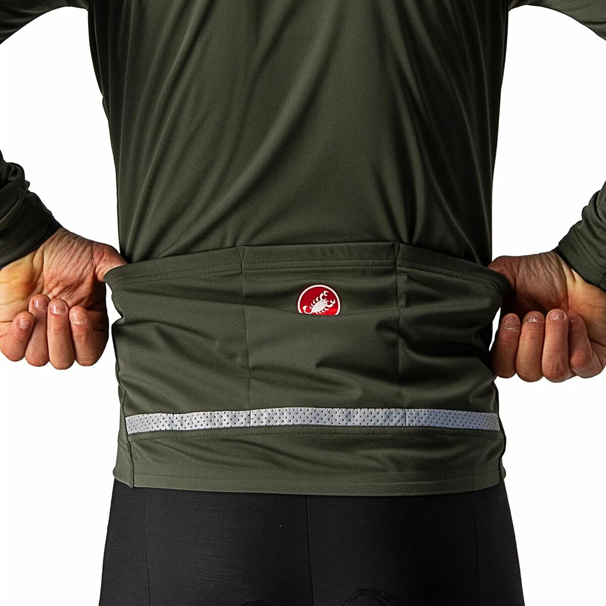 Castelli claims their most versatile layer with the Go Jacket. It keeps out the cold while offering top-notch breathability for our ride. A neutral fit with ample stretch provides extra comfort so we can have full freedom of movement while we pedal, and a large reflective strip across the three rear pockets increase visibility for low-light situations. This is the jersey to do it all and then some.