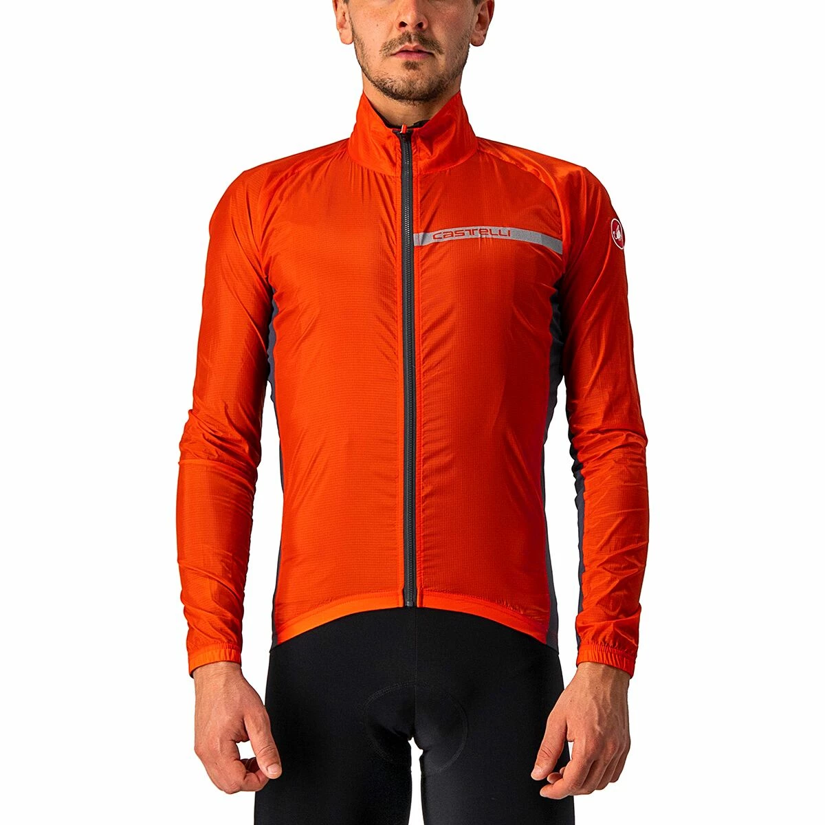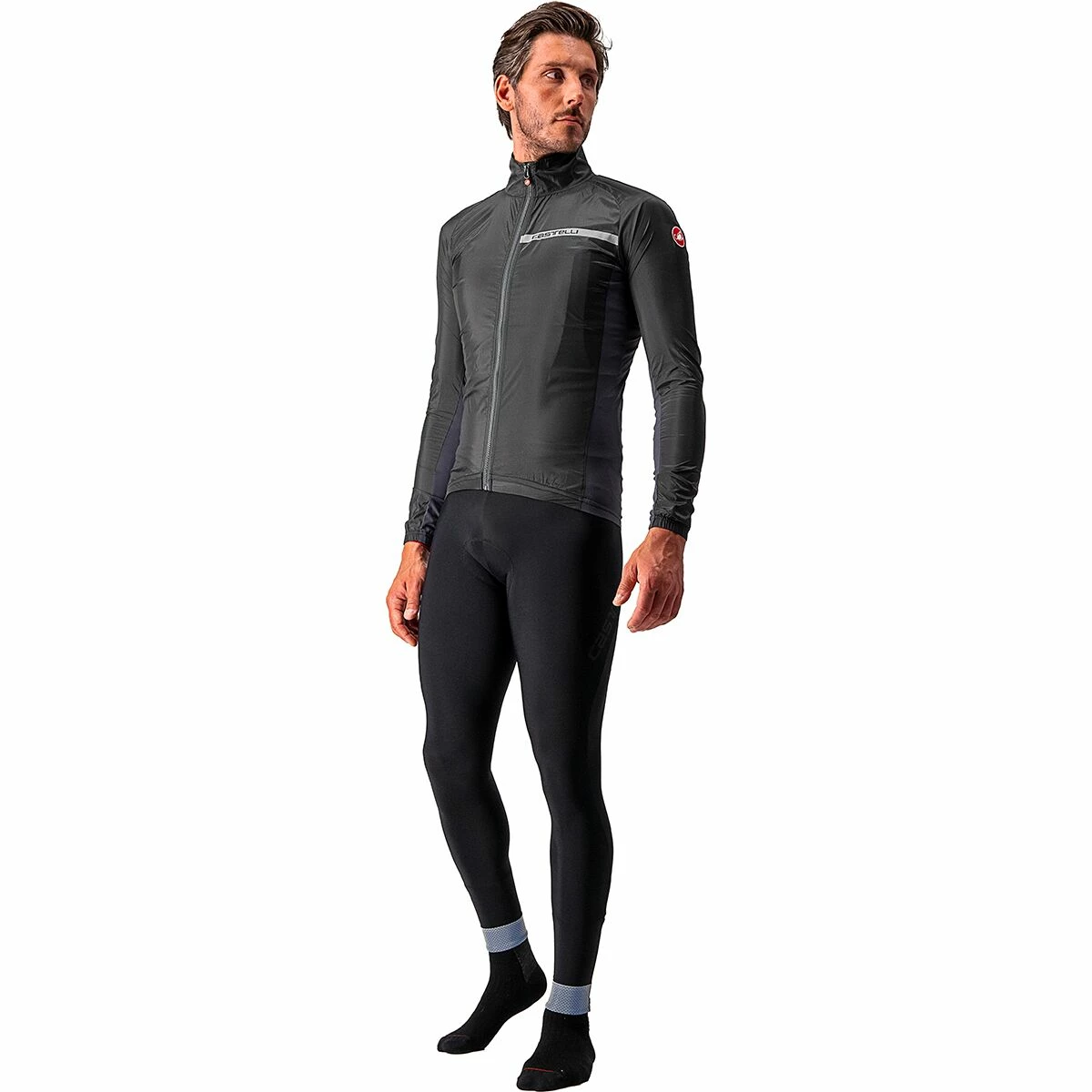 - Lightweight jacket from Castelli helps keep cool rainy weather out
