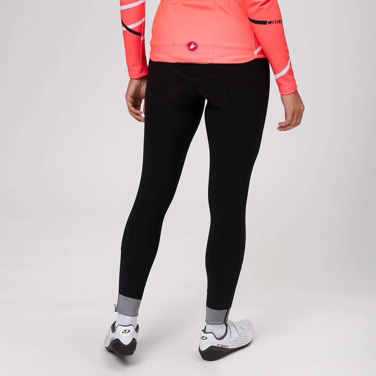 Castelli crafts the Tutto Nano Tights with comfort in mind, reducing seams to reduce potential for chaffing, while still keeping panels strategic to wrap around your muscles supportively. Castelli’s KISS Air2 Donna chamois is employed at the seat to absorb jarring vibrations and encounters with rough road conditions thanks to its multi-density construction. A seamless skin care layer offers Castelli’s softest next-to-skin fabric for comfort against your most sensitive anatomy, while variable thickness foam is used to provide maximum support to the ischial zone, tapering to moderate support under the perineum to help prevent pain and fatigue before you’re ready to call it a day. The tights are finished off with a zipper at the cuffs for easy on-and-off, and large reflective band at the ankle, helping boost your low-light visibility.