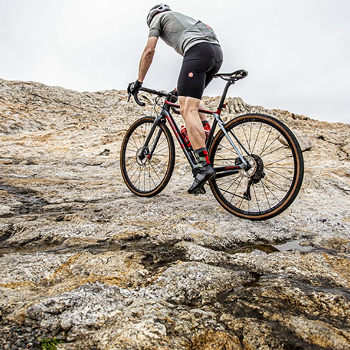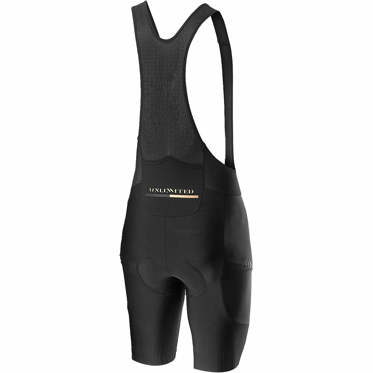 The Unlimited Bib Short has all the features weโve been daydreaming about to make them perfect for all-day all-terrain rides, with integrated pockets and strategic double-layered fabric. The bib upper hosts two integrated mesh pockets, which not only help to store extra fuel and essentials for long rides, but also make it easy to pair the bibs with just a t-shirt for a more casual, single-track focused outing. Along the thigh and hip, there are two layers of Castelliโs Unlimited Lycra, which is more tear and abrasion-resistant, without feeling constrictive or heavy. This double layer acts as a slip-plane in event of a fall, while also providing sneaky pockets for those extra groceries.